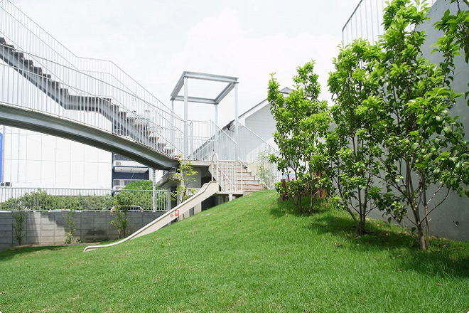 敷地が狭いのならば、園庭として十分に広さの取れる屋上まで立体化して繋いではどうだろう、どうせ繋ぐなら山として連続させると楽しいのではないか。運営者側とのやり取りの中で方針が定まっていった。