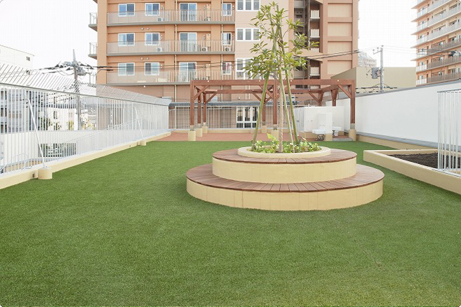 この保育園は主要な駅に近く、高層マンションや商業施設などが続々と建てられている地域に計画された。