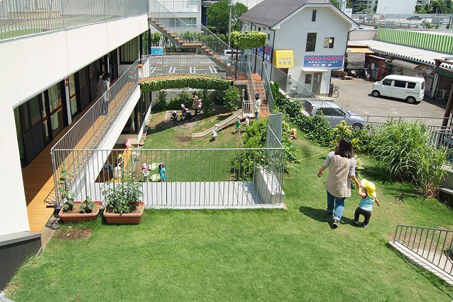 この保育園は主要な駅に近く、高層マンションや商業施設などが続々と建てられている地域に計画された。