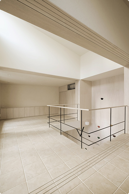 品川区平塚に建つ、猫とゴルフをこよなく愛される御夫妻の家。 敷地は、幅が狭く奥が深いクランク形状であた。敷地に沿った箱型の家にすると窮屈で窓が開けにくい家になってしまう。 そこで内部は1階がゴルフゾーン、2階が生活ゾーン=猫のスペース、というわかりやすい構成としつつ、テラスや吹抜などを色々なところに散りばめる計画とした。 重要なのは、すべての部屋に気持ちのいい光と風が入り、そして猫とゴルフがどこにいても感じられること、である。 住戸の中心にある吹抜は採光と通風、そして上と下の階のコミュニケーションを生み出している。 また主要な居室間は引戸による間仕切とし、すべてを引き込んで開け放てば1階と2階が一体となる設えとしている。 外部にはパターの練習場としてグリーンを作り、屋上は運動公園に開いたルーフバルコニーとした。 ※オーナーはここをゴルフラウンジとしてゲストをお迎えしています。 どなたでもWELCOMEですので、ゴルフがお好きな方はぜひ行ってみてください。 【Golf Lounge Green Oasis】 http://golf-oasis.tokyo/index.html