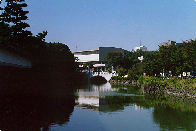 一方、アプローチは開放感のある広場になりました。レクチャー等を行う講堂、お堀に面するレストラン、ショップ等も新たに整備されています。