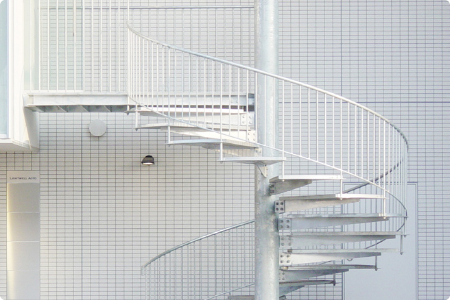 外部廊下の外装には有孔鋼板を採用、外からの視線を緩やかに遮りつつ、明るい中庭を演出しています。住戸は、大開口のある開放的で広めのワンルームです。